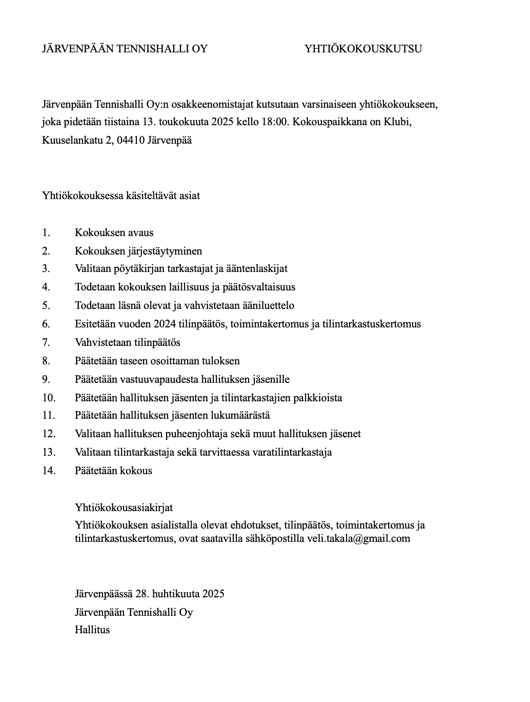 Yhtiökokouskutsu ja valtakirjat (ladattava Word-tiedosto alla)